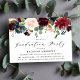 Elegant floral graduation party invitation features a floral border at the top with rich burgundy, blush pink, and navy blue watercolor flowers complimented by lush green foliage. The words "Graduation Party" are displayed in a beautiful script font with your party details below. The reverse side of the invites features an optional navy blue watercolor background.