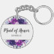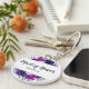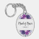 Enchanted Floral Purple and Silver Flowers Leaves Stems and Vines Watercolor Maid of Honour Monogrammed Name Bridal Wedding Party Favour Keychain