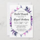 Enchanted Floral Purple Watercolor Flowers Leaves Vines and Feathers Silver Border Geometric Hexagon Framed Bridal Shower Invitations