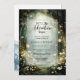Let the adventure begin enchanted forest baby shower theme invitation template, with an enchanted forest with glowing lights and the phrase "let the adventure begin". A magical adventure style for your baby shower.