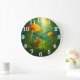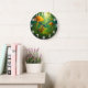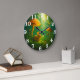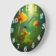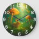 Whimsical forest clock featuring a curious yellow bunny among vibrant mushrooms with fluttering butterflies. White numerals on lush green backdrop create storybook magic—perfect for nurseries or fantasy-themed rooms.