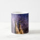 This design features a beautiful image of two tall trees rising up into the sky, surrounded by other trees in a forest. The scene is set at night-time when everything looks particularly magical and enchanting. There is a flock of birds in flight overhead. The sky is made up of a beautiful mixture of purple and blue; it is dotted with bright white stars.