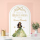 Welcome your guests in magical style with this personalised clear acrylic welcome sign. The sign features a beautiful girl in a forest-inspired gown with butterflies, a whimsical bow, on an elegant arch background, creating an enchanting first impression. With the ability to customise it with the birthday girl's name, this sign is a perfect centerpiece for your party entrance. © Kimbellished, LLC