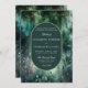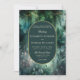 A whimsical watercolor illustration of lush foliage in emerald green, sparkling with fairy lights and magic dust, decorates this spring summer fall wedding invitation with an enchanted forest theme. It also features a faux gold emerald and gold oval frame that sets the atmosphere for an enchanted evening and magical night. An elegant, modern invitation for a fairytale wedding. Perfect for brides who love the fairytale forest setting, the fairy forest or fairy garden theme and emerald green, and elegant frames.