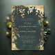 An elegant, modern wedding invitation featuring an illustrated frame of tree branches lush, wild greenery and cascading foliage. Digitally layered with accents of shimmering gold over a glittering emerald green background, this invitation captures the essence of an enchanted forest for any season—spring, summer, fall, or winter. With a touch of sophisticated modern calligraphy, it’s the ideal choice for brides dreaming of a fairytale forest wedding, a magical woodland celebration, or a fairy garden setting. This invitation is perfect for anyone inspired by the rich beauty of an emerald green, fairy-tale forest theme.