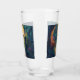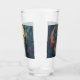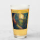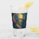 Artistic drinking glass features an AI generated digital art image of a magical forest garden gate with sun ray beaming in background.