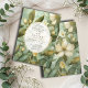 This enchanted forest garden wedding invitation features soft white flowers and greenery with your details on a gold framed white banner. You may keep your middle names or delete them and use only first and last names if you prefer. Use the simple design tool to explore fonts. Available in print, as a digital download or both.