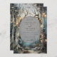 This enchanted forest path wedding invitation features soft bokeh glowing lantern lights, with your details. The hues are soft indigo with an ethereal misty quality. You may keep your middle names or delete them and use only first and last names if you prefer. Use the simple design tool to explore fonts. This invite is available in print, as a digital download, or both! Forest path image on front and back.