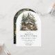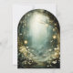 A magical enchanted forest themed first birthday invitation for a little girl or boy birthday party, featuring an enchanted forest gnome and woodland animals on an arched shape card stock invitation. Customise for any age child. Available in print, as a digital download to send on your phone, or both.