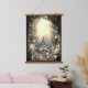 Ethereal forest with sunlit portal, in this magical enchanted tapestry style, with glowing lights, gnome and woodland animals. Fantasy theme tapestry.