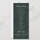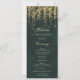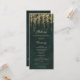 A whimsical watercolor illustration of lush foliage and tree branches layered with gold (digital effect, not real foil) over an emerald green background, sparkling with fairy lights and magic dust, decorates this winter spring summer fall wedding program card with an enchanted forest theme. An elegant, modern wedding ceremony program for a fairytale wedding. Perfect for brides who love the fairytale forest setting, the fairy forest or fairy garden theme and emerald green.