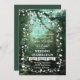 Beautiful outdoor rustic wedding theme with string lights and touch of magical sparkle among the trees. Chalkboard style typography text with graceful floral border. A perfect choice for garden or any outdoor wedding venue. Card back text says reception to follow, but can be customised or deleted if you prefer.