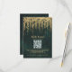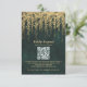 A whimsical illustration of lush hanging vines layered with gold (digital effect, not real foil!) over a sparkling emerald green watercolor background, sparkling with fairy lights and magic dust, decorates this winter spring summer fall wedding QR RSVP card with an enchanted forest theme. An elegant, modern reply card for a fairytale wedding. Perfect for brides who love the fairytale forest setting, the fairy forest or fairy garden theme and emerald green, mauve and gold.