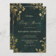 A whimsical, minimal frame of lush foliage, sparkling with fairy lights and magic dust, layered with a gold effect (this is a digital effect, not real foil or glitter!) decorates this spring summer fall winter neutral baby shower invitation with an enchanted forest theme and an emerald green background. An elegant, modern invitation for a fairytale baby shower. Perfect for moms and parents who love the fairytale forest setting, the fairy forest or fairy garden theme and emerald green, and who want a gender neutral celebration.