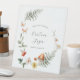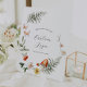 Custom Sign for your baby shower, featuring a wreath of greenery, woodland mushrooms and wildflowers. Add your text using the fields provided.