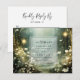 Ethereal forest path of flowers and trees are featured in this magical enchanted sage green wedding rsvp, with glowing lights.
