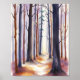 Step into the serene beauty of the "Enchanted Forest Pathway," a captivating watercolor landscape that invites you on a tranquil journey. This evocative artwork features a collection of towering trees, their slender trunks painted in a harmonious palette of warm browns, deep purples, and subtle greys, reaching skyward. A winding path, bathed in ethereal, shimmering light, leads the eye deeper into the mystical woods, creating a sense of wonder and peaceful introspection. The gentle glow suggests a hidden clearing or a new beginning, making this piece perfect for bringing a calm and inspiring atmosphere to any room. Ideal for nature lovers, those seeking tranquillity, or anyone who appreciates the unique beauty of hand-painted art. This print captures the essence of a quiet, magical woodland escape.