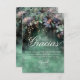 A whimsical watercolor illustration of lush foliage in emerald green with hues of periwinkle blue, pink, lavender and lilac, sparkling with fairy lights and magic dust, decorates this spring summer fall quinceanera thank you card with an enchanted forest theme. An elegant, modern save the date for a fairytale celebration. Perfect for girls who love the fairytale forest setting, the fairy forest or fairy garden theme and emerald green with a touch of lavender purple. Matching items available.
