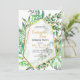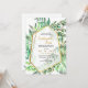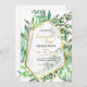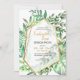 A modern and chic invitation featuring a variety of forest leaves with a thin, abstract, gold frame. (<a href="https://www.freepik.com/free-photos-vectors/brochure">Brochure vector created by BiZkettE1 - www.freepik.com</a>). <br/><br/>The card is easy to customise with your wording, font, font colour and choice of six paper types.<br/><br/>Not exactly what you're looking for? All our products can be custom designed to meet your needs at no extra charge.<br/><br/>Simply contact us at askcottonlamb@gmail.com<br/><br/>Coordinating products available: