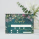 This enchanted forest wedding RSVP card with meal choice features lush, wild greenery, hanging foliage, and tree branches draped with fairy lights in a faux gold effect, creating a romantic, magical atmosphere. An arch of fuchsia pink, purple, and cream roses adds a luxurious floral touch, while the glittering emerald green background enhances the mystical, fairytale aesthetic. Perfect for a spring, summer, fall, or winter wedding, this elegant, modern RSVP card is ideal for brides who adore a fairy forest setting, woodland weddings, fairy garden themes, romantic rose designs, and a colour palette of emerald green and gold. Whether you're planning a mystical fairytale wedding, a botanical-inspired ceremony, or a whimsical woodland celebration, this luxurious floral RSVP card captures the magic of a dreamy forest wedding.