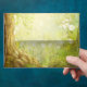 Beautiful illustration of an enchanted woodland forest scene with daisies and filtered sunlight. Would make a beautiful summer theme wedding envelope or just a beautiful custom envelope for any occasion. This design also comes on many wedding stationery products to suit your needs.