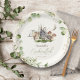 This cute and whimsical gender-neutral "enchanted forest" kid's birthday paper plate features woodland animals, such as a bunny/rabbit, squirrel, and hedgehog with mushrooms on a cream background. Personalise it for your needs. You can find more bunny products at my store.