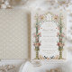 Step into an enchanted garden with this exquisite bridal shower invitation, perfect for celebrating the bride-to-be's upcoming nuptials. The front of the invitation is adorned with a flourish of botanical artistry, featuring flowers in soft hues of peach, coral, blush pink, and sage green, nestled against an ivory background. A classical urn overflows with the floral arrangement, while delicate peacocks add an air of regal charm. Golden accents and elegant calligraphy enhance the vintage vibe of this beautiful invite. The back of the invitation is equally stunning, showcasing a sophisticated cream and gold geometric pattern that exudes timeless elegance. This invitation is a lovely prelude to a wedding filled with romance and beauty.