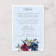 Elements: a captivating bouquet accompanied by elegantly crafted typography that presents the details of your special day. Your names are delicately traced in ornate cursive with whimsical serif accents Colours: light blue, powder blue, baby blue, navy, burgundy, mulberry. Themes: enchanted garden, secret garden, botanical, all season, whimsical, romantic, fairytale. Collection: Enchanted Garden Light Blue Burgundy Navy Wedding Collection Product Type: Enclosure Card
