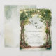 Announce your special day with this enchanted garden string lights save the date, perfect for romantic outdoor weddings. Surrounded by a beautiful watercolor tree arch with lush greenery and softly glowing string lights, this design captures the magic of an intimate garden celebration.