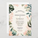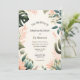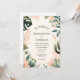 A beautifully crafted wedding invitation adorned with elegant floral and foliage designs invites guests to the wedding of the bride and groom in an intimate ceremony.