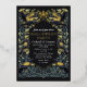 Elegant and gothic design with ravens and foliage. This design features a black background, with dark blue ravens and muted green leaves with gold accents.