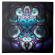 This is a stained glass effect fractal image that seems to glow with a blue heart at the centre. Around the blue heart are glass like bubbles of light blues, and purples.