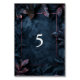 Enchanted Midnight Garden Wedding Table number card by Vintage Nordica. Ideal for alternative weddings, this card exudes classic charm with its delicate botanical illustrations in calming blues and deep reds. Perfect for DIY weddings, this romantic watercolour design is fully customisable with your names, date, and venue. Don't forget to explore the Enchanted Midnight Garden collection for matching thank you notes, RSVP cards, return labels, gift tags and favour boxes for a coordinated wedding look. For a celebration as unique as you are.