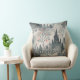 This fantastical scene throw pillow features a dark, towering castle with glowing windows nestled in a misty forest of blue and grey tones. Surrounded by slender evergreens, bare-branched trees, and soft blossoms in pink and orange, the landscape shimmers with subtle specks of magical light. The twilight ambiance and ethereal details create a whimsical, mysterious atmosphere, perfect for lovers of fantasy, fairytales, and dreamlike forest settings.
