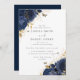 Enchanted Navy Blue Roses & Gold Wedding Invitation