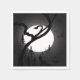 Enchanted forest Halloween night, a black and grey silhouette painting with flying bats and a snake in the tree view