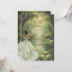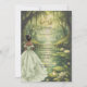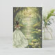 Invite guests into a magical fairytale celebration with this enchanting Quinceañera invitation. Set within a dreamy forest pond scene, this design features a graceful princess in a flowing sage green ball gown, a regal gold crown, glowing firefly-like lights, water lilies, and a charming frog prince detail.