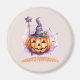 Step into a world of whimsy and magic with this adorable Halloween magnet featuring the phrase “Enchanted Pumpkin Patch.” A smiling jack-o’-lantern dressed in a witch hat and holding a sparkling purple witch wand brings a touch of charm and enchantment to spooky season. Perfect for those who prefer cute over creepy, and magic over mayhem.