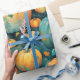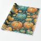 "Enchanted Pumpkin Patch" is a magical wrapping paper design that transports you to a mystical realm of autumn celebration. This captivating pattern features a dense array of pumpkins in shades of vibrant orange and mystical blue, each adorned with whimsical, fairy-tale-like patterns that seem to tell their own little stories. The pumpkins are nestled amongst curling leaves and subtle accents of gold, enhancing their charm and wonder. The deep, rich colours set against a shadowy background make this design perfect for Halloween gifts or adding an extra touch of enchantment to any fall-themed present.