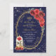 Enchanted Rose Quinceañera Navy Red Gold Birthday Invitation