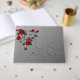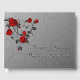 Grey background with red roses on a vine wedding guestbook.