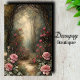 This enchanting composition draws viewers into a mystical woodland path, where ethereal light filters through arching branches to illuminate a garden of dreams. Masterfully rendered roses in delicate pink hues command the foreground, their petals rendered with exquisite detail that captures both their botanical accuracy and their romantic symbolism. The composition creates a natural arch, leading the eye down a mysterious golden path into misty depths.