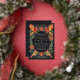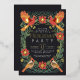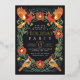 Wish your loved ones a Merry Christmas card design featuring an elegant design with cardinal birds, poinsettia, and foliage against a black background.