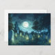 Halloween concept, enchanted graveyard with glowing tombstones and full moon illustration.