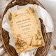 This enchanting baby shower design features a magical vintage storybook scene filled with charming wizard-inspired details. Delicate illustrations of potion bottles, spell books, antique keys, candles, and a wise little owl surround an ornate decorative frame, creating a whimsical atmosphere perfect for a magical celebration. The warm parchment background and soft watercolor textures give the design a nostalgic fairy-tale aesthetic inspired by classic fantasy illustrations. Ideal for wizard-themed baby showers, magical woodland celebrations, or whimsical fantasy gatherings welcoming a little wizard on the way.