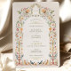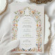 Whisk your guests away to a whimsical garden affair with our Enchanted Victorian Aviary Wedding Invitation. This enchanting design features a myriad of flowers in a pastel palette of peach, blush, and creams, intertwined with sage and olive greenery. A playful touch is added with the presence of charming butterflies and birds in hues of sky blue, soft orange, and delicate pinks, which seem to flutter and perch among the floral festoons. The arching canopy of blooms and fauna evokes the ornate ironwork of a Victorian conservatory, setting the stage for a magical wedding celebration surrounded by nature's beauty.