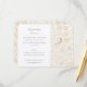 The wedding reception card is a celebration of Victorian splendour, inviting guests to partake in an evening of dinner, dancing, and merriment. Its cream backdrop is a canvas for the gold-toned floral and love bird motif, reflecting the couple's union and the joy of the occasion. The golden bird, a symbol of love and partnership, graces the elegant Victorian patterns that border the card. This piece not only provides essential information about the reception but does so with a luxurious and romantic design that promises an event filled with enchantment and grandeur.