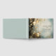 Ethereal enchanted forest mist and trees with hanging mushroom shaped lanterns featured in this wedding guest book, in deep blue grey forest hues, and mist. Solid blue grey on the back to pick up the deep colours on the front .