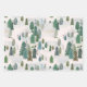 Hand painted holiday design featuring a wintery green pine tree forest on an ivory coloured snowy background.
