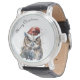 Add a sophisticated and personalised touch of holiday magic to his wrist with our "Enchanted Christmas Owl" customisable watch for men. This distinguished timepiece features a delightful watercolor illustration of a Christmas owl, adorned with a festive red hat, prominently displayed on the watch face. This enchanting owl brings a whimsical and joyful spirit to his daily ensemble.